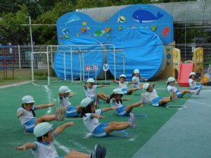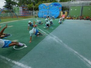 怪我をしないように準備体操をして