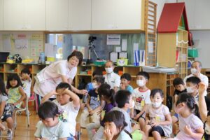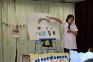 保育者からの出し物では「シャボン玉」のパネルシアターを行いました