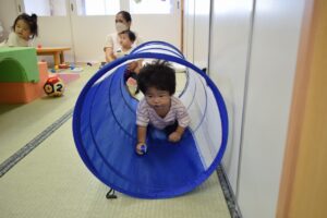 自分から巧技台に登ろうとしたり、トンネルを潜ろうと
