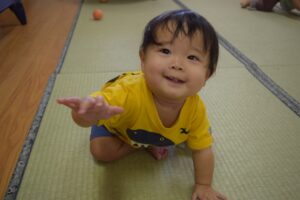 保育者に向かってハイハイや歩けるようになって一目散に笑顔で