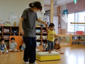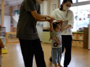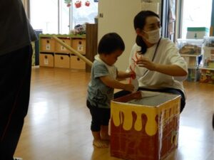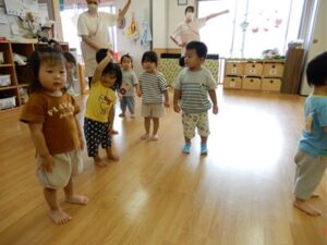 今日は2階のお部屋を広く使って、保育部のお友達みんなで