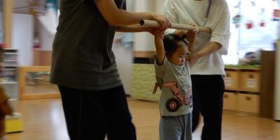 今日は2階のお部屋を広く使って、保育部のお友達みんなで