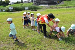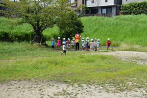 イルカ組はパンダ組と一緒に治水緑地でかけっこや大きなかぶごっこ
