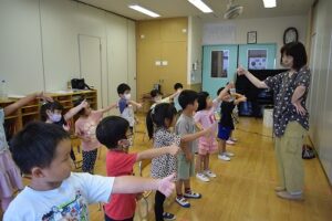 実際に動きながら口に出すことで、子どもたちもすぐに覚えることができました。