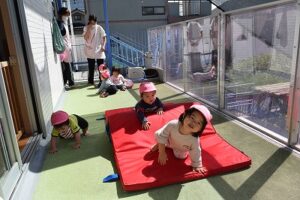 場所が変わっても、いつも見ているマットが出てくれば、ニコニコ笑顔で山登りやトンネルくぐりが出来ました。