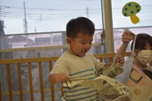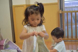 新聞紙を破く際に指先の力をうまく使って破く姿が見られていました