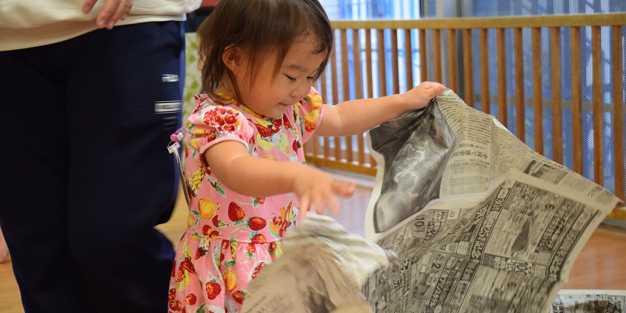 新聞紙を破く際に指先の力をうまく使って破く姿が見られていました
