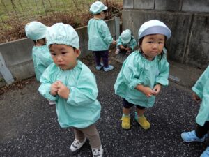道を眺めていると他園のバスが通り、「いってらっしゃーい」と
