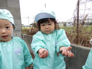 中には「たくさん取れたよー!」と保育者に伝えに来る姿もありました