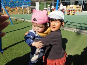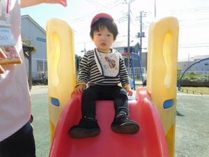 ラッコ組のお友達もお兄さんやお姉さんと一緒に遊んだり、先生と一緒に滑り台をして楽しんでいました。