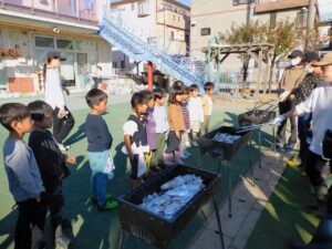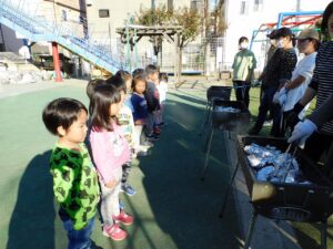 そして午後の時間では、保護者の方のボランティアのご参加もあり焼き芋会を行うことが出来ました