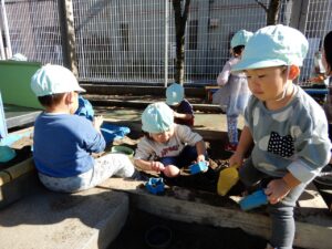 砂場ではスコップを使って掘るという動作を一所懸命になって