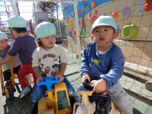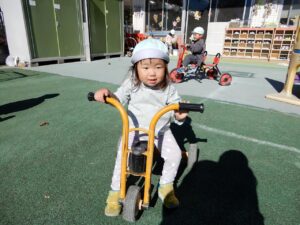 お気に入りの三輪車もあり、子ども達は園庭につくと