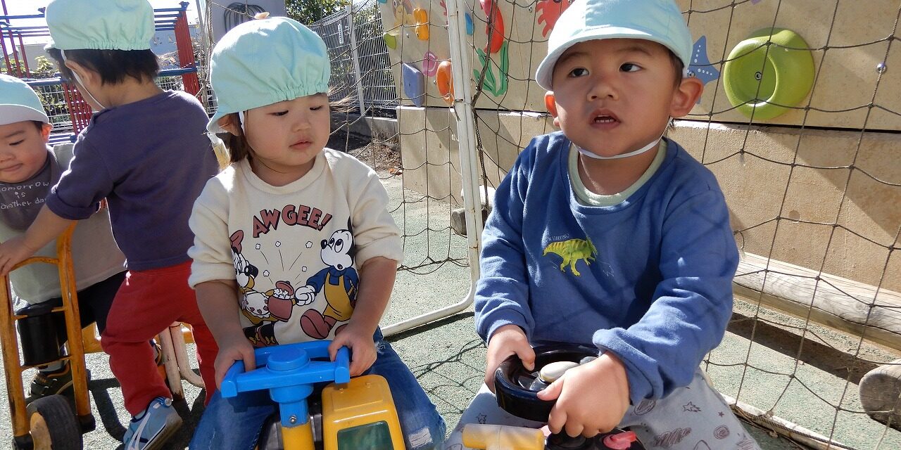お気に入りの三輪車もあり、子ども達は園庭につくと