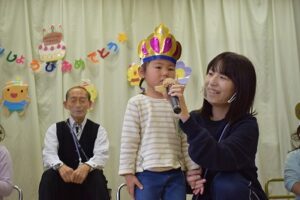 今月は5人のお友達がお誕生日でした。みんなでケーキを囲んでお祝いしてもらい