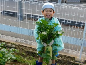 大きな大根が見えてきたときには「わー、おおきいねー」と友達や保育者と共感する