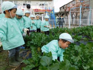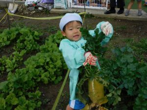 パンダ組は体操指導の前に大根堀を行い、「これから大根堀するよー」と