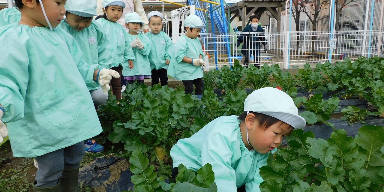 パンダ組は体操指導の前に大根堀を行い、「これから大根堀するよー」と