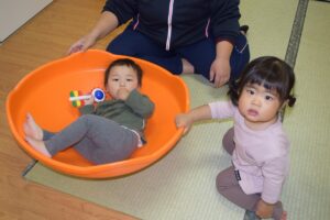 その中に乗ると、ゆらゆらと揺れて楽しく遊ぶことが出来ます