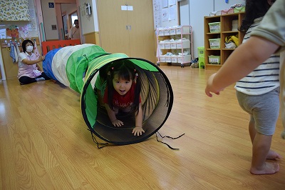 イルカ組さんは今日はお部屋の中でサーキット遊びをしました。 長いトンネルもあっという間にくぐり抜けて、出口でお友達の名前を呼んだり、 お友達がくぐりに抜けるのを待っ…