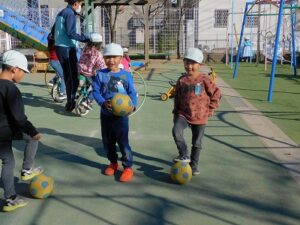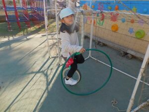 リハーサルの後、園庭で遊ぶ時間にも「もっと上手になりたい」と一輪車の練習を頑張っていました。