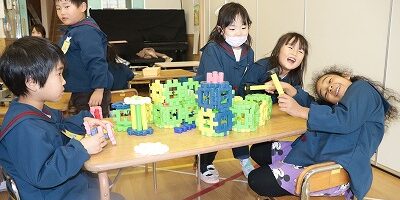キリン組のお友達はおやつのコーンフレークを食べるときに、お友達と話が弾んでいました。