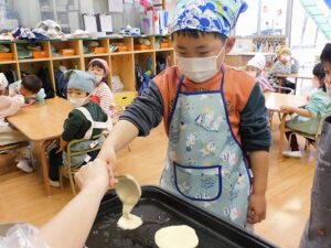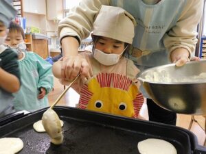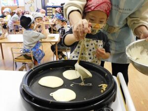 今日は幼稚部さんでホットケーキ作りをしました♪