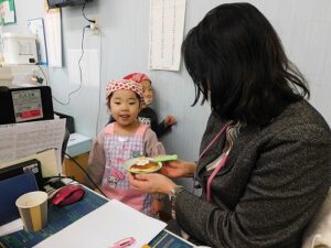最初に、先生からホットケーキの作り方を教えてもらいました(^^♪