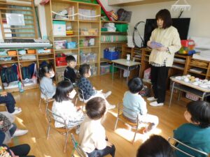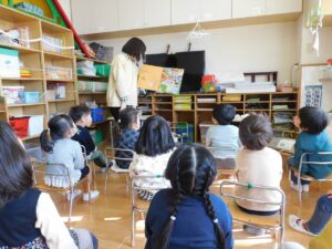 最後に今まで出てきた動物が出てくる絵本の読み聞かせを行い、歌を一緒に歌う姿がありました