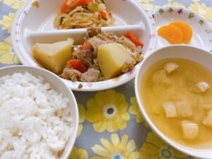 ~今日のお給食~ ・肉じゃが ・大根サラダ ・ごはん ・味噌汁(キャベツ・しめじ・油揚げ) ・モモ ~今日のお給食~ ・牛乳 ・ジャムサンド Share this post Share on FacebookShare on Facebook Share on XShare on X Post navigationPreviousPrevious post:2月6日(月)NextNext post:2月7日(火)関連記事12月9日2025年12月9日12月5日2025年12月5日12月4日2025年12月4日11月28日2025年11月28日11月27日2025年11月27日11月26日2025年11月26日