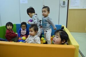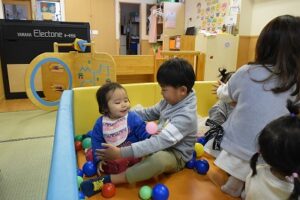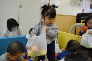 ビニール袋を渡すと、自分で沢山袋にボールを入れて楽しんでいました。