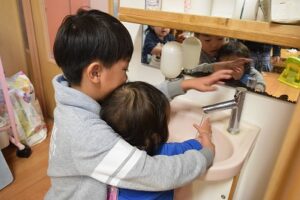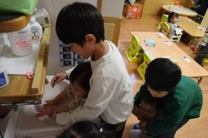 お片付けや、食事前の手洗いも、ライオン組さんが手伝ってくれて、