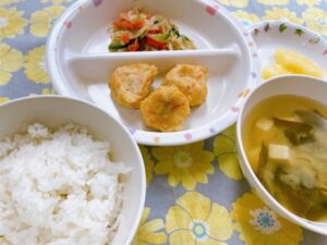 ~今日のお給食~ ・ツナと豆腐の落とし揚げ ・小松菜サラダ ・ごはん ・味噌汁(わかめ・ねぎ・豆腐) ・パイン ~今日のおやつ~ ・牛乳 ・ハムチャーハン Share this post Share on FacebookShare on Facebook Share on XShare on X Post navigationPreviousPrevious post:2月15日(水)NextNext post:2月16日(木)関連記事12月9日2025年12月9日12月5日2025年12月5日12月4日2025年12月4日11月28日2025年11月28日11月27日2025年11月27日11月26日2025年11月26日