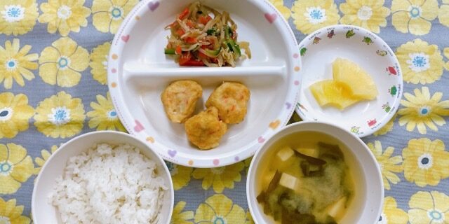~今日のお給食~ ・ツナと豆腐の落とし揚げ ・小松菜サラダ ・ごはん ・味噌汁(わかめ・ねぎ・豆腐) ・パイン ~今日のおやつ~ ・牛乳 ・ハムチャーハン Share this post Share on FacebookShare on Facebook Share on XShare on X Post navigationPreviousPrevious post:2月15日(水)NextNext post:2月16日(木)関連記事12月4日2025年12月4日11月28日2025年11月28日11月27日2025年11月27日11月26日2025年11月26日11月25日2025年11月25日11月21日2025年11月21日