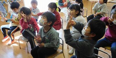 パンダ組のお友達は、講師の先生のお話をよく聞いて、