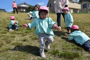 芝生の坂もどんどん登ったり降りたりするようになりました。