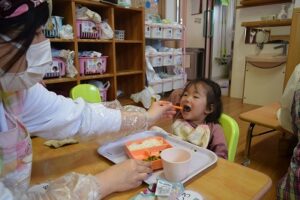 自分でスプーンを持って食べるのもとっても上手になっています。