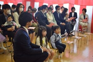 幼稚部のお友達は保護者から離れ、一人で椅子に座ることも