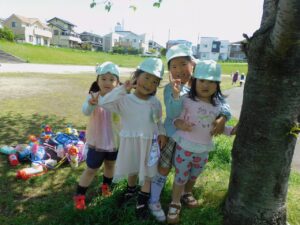 広場に着くと、自分たちでも好きな遊びを見つけ取り組む姿が見られていますが、お兄さんお姉さんと一緒に