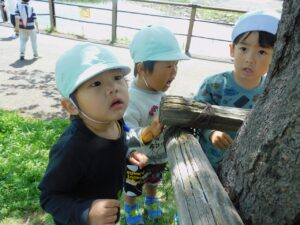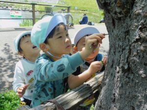 そんな桜の木には、アリの行列がいたようで子どもたちはじっくりと観察する様子が見られていました