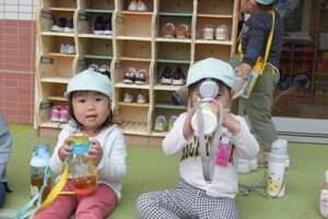 喉が渇くと自分たちで水筒の所まで行き、お茶を飲む姿も見られました(^_^)v