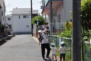 今日はペンギン組のお友達が保育園の周りにお散歩に行きました。