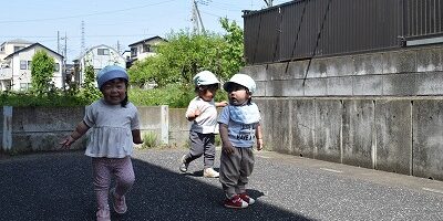お友達と一緒に、沢山走ったり、手を繋いで歩きいていました。