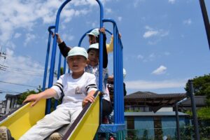 公園に着くと友達と滑り台で一緒になって滑り降りたり