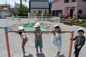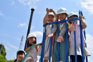 午前中は、幼稚部で桃の木公園に散歩に行きました