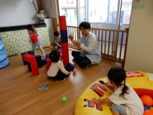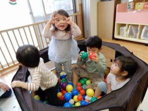 午前中はみんなでボールプールやソフトブロックなどを出して遊びました★