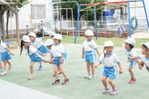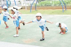 準備運動で取り組んでいるバランスも徐々に運動会の組体操へと繋げていきます