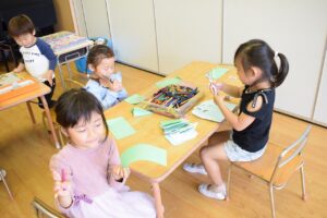 きりん組では、折り紙や紙を使った遊びが流行しています