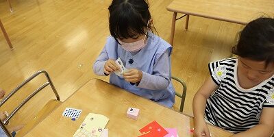 ライオン組のお友達が、延長保育の時間、制作を楽しんでいました。 パッチンを使って、画用紙をくりぬいたり、 シールを貼ったりしながら楽しんでいました。 どんな作品を作ろうか考えながら、真剣な表情です。 お友達と相談しながら作るのも楽しいですね。 Share this post Share on FacebookShare on Facebook Share on XShare on X Post navigationPreviousPrevious post:5月29日(月)NextNext post:5月31日関連記事12月4日(木)2025年12月4日12月1日(月)2025年12月1日発表会のお知らせ NO12025年12月1日写真販売のお知らせ2025年12月1日11月29日(土)2025年11月29日11月28日(金)2025年11月28日