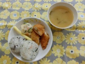 ~今日のお給食~ ・ささみカツ ・ポテトサラダ ・青菜おにぎり ・味噌汁(豆腐・なめこ・わかめ) ・チーズ ~今日のおやつ~ ・牛乳 ・コーンフレーク Share this post Share on FacebookShare on Facebook Share on XShare on X Post navigationPreviousPrevious post:6月6日(火)NextNext post:6月7日(水)関連記事12月9日2025年12月9日12月5日2025年12月5日12月4日2025年12月4日11月28日2025年11月28日11月27日2025年11月27日11月26日2025年11月26日
